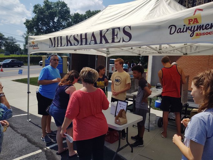 The PA Dairymen's Association invited members of the Swimming & Diving team to serve milkshakes at Saint Catherine Laboure's "Dinner on Derry" on Sunday August 18. For volunteers' service, the Dairymen's Association will share profits with the team.