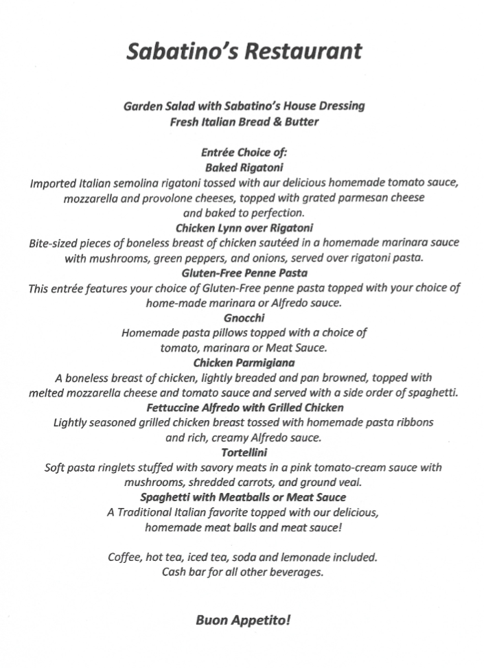 Angela Warner is our team's point of contact with the restaurant, and she will need a head count and payment for each family's dinner(s) by Wednesday, January 14. The cost per person is $30. You will be able to choose your entree the evening of the dinner. A menu is attached at the bottom of this webpage (the link is HERE).